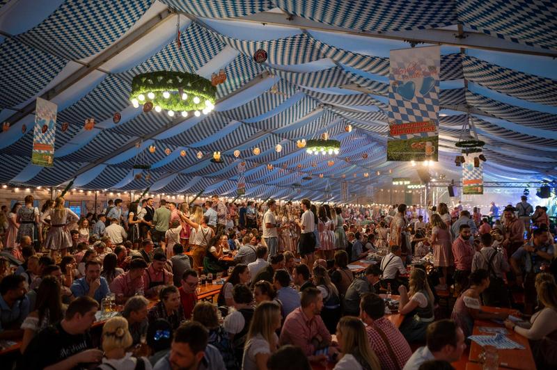 Partystimmung pur im Festzelt des Karlsruher Oktoberfests.