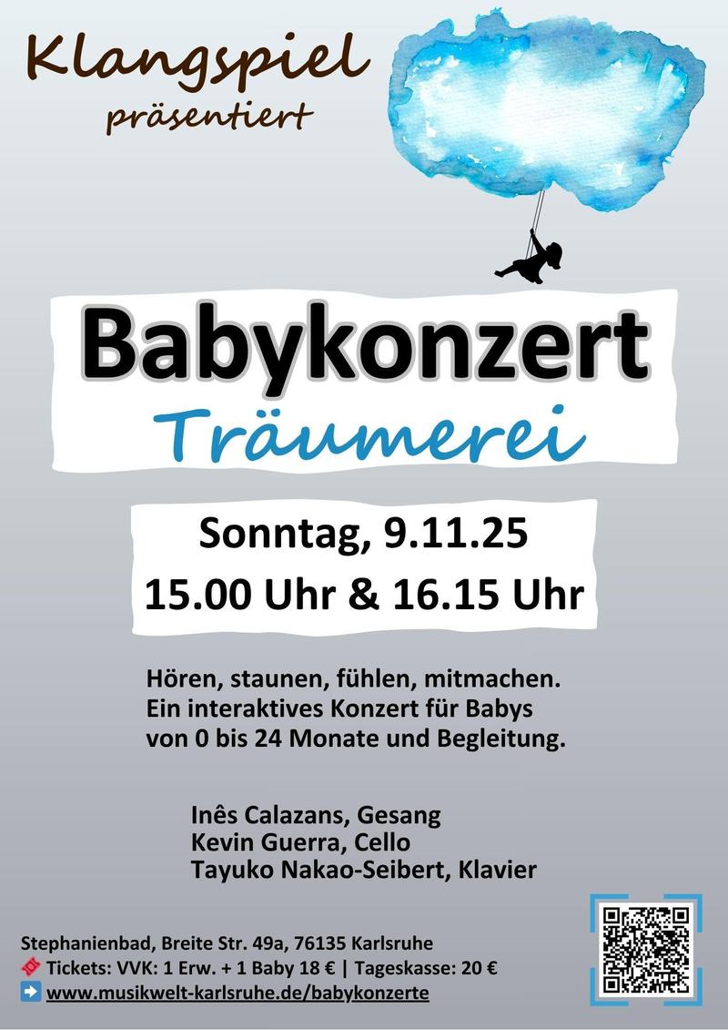 Die Babykonzerte des Ensembles Klangspiel sind ein innovatives Konzertformat für Familien mit Babys von 0 bis 24 Monaten. Das einzigartige Konzept richtet sich mit seiner Gestaltung ganz nach den Bedürfnissen der jüngsten Zuhörer:innen und ihrer Eltern.