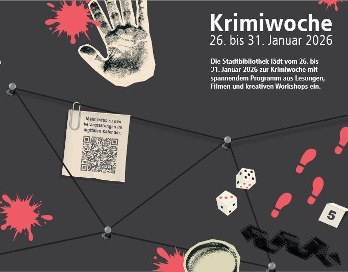 Vom 26. bis 31. Januar 2026 öffnet die Stadtbibliothek erneut ihre Türen zur beliebten Krimiwoche und lädt alle Interessierten dazu ein
