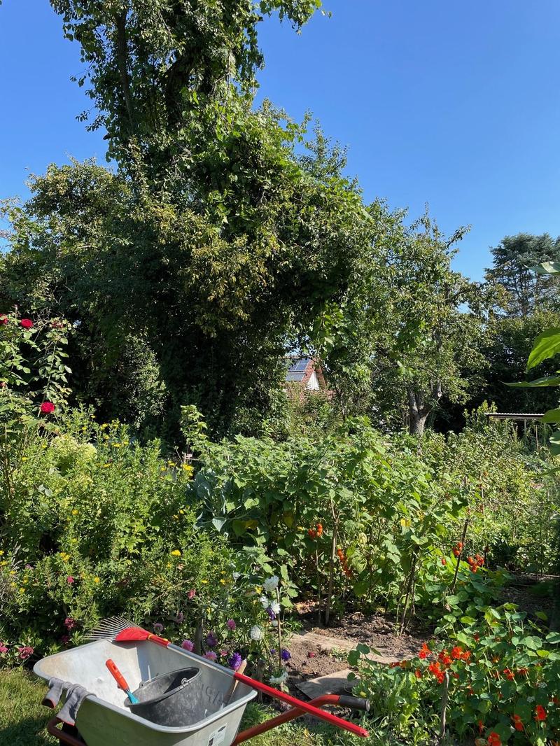 Im rund 3.000 Quadratmeter großen Gemeinschaftsgarten der NaturFreunde Durlach engagieren sich 16 Vereinsmitglieder. Sie pflegen persönliche und gemeinschaftliche Beete, die jeweils auf ganz eigene Weise gestaltet und mit viel Sorgfalt bepflanzt sind. So entsteht ein lebendiger Ort, an dem Erfahrungen ausgetauscht, Zeit miteinander verbracht und die Vielfalt der Natur bewusst erlebt wird. Der Garten dient nicht nur dem Gärtnern: Auch andere Vereinsgruppen nutzen diesen besonderen Platz regelmäßig. Die Kindergruppe „Umweltdetektive“ entdeckt hier alle zwei Wochen die Natur und im Sommer probt eine Musikgruppe französische Chansons unter freiem Himmel. Darüber hinaus bildet der Garten eine stimmungsvolle Kulisse für vereinseigene Feste wie die „Blaue Stunde“ oder das Erntedankfest. Dieser Garten steht für Begegnung, Naturverbundenheit und Vielfalt - ein kleines grünes Refugium, das Menschen zusammenführt.