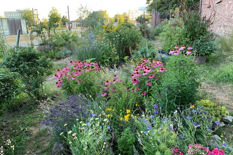 Was Anfang 2013 noch ein frisch eingesäter, rückgebauter Parkplatz war, ist jetzt ein üppig blühender Garten, der für viele Spaziergänger*innen ein abwechslungsreicher Erholungsraum geworden ist. Ein "Hingucker" sind die großen Weidenbeete, aber auch zahlreiche Hochbeete mit Essbarem sowie Erdbeete mit blühenden Pflanzen. Sie bieten Lebensraum und Nahrung für die zahlreichen Insekten und andere Tiere, die unseren Garten besuchen. Gestaltet, gepflegt und belebt wird unser Gemeinschaftsgarten von circa 35 Gärtner*innen. Weitere Informationen gibt es auf der Internetseite: www.faechergaertner.de