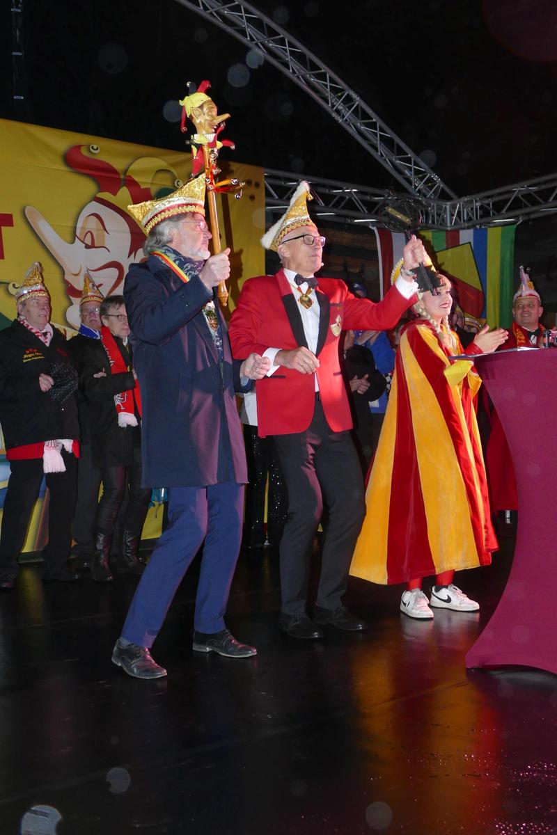 Die Karlsruher Narren erobern den Rathausschlüssel von Oberbürgermeister Dr. Frank Mentrup.