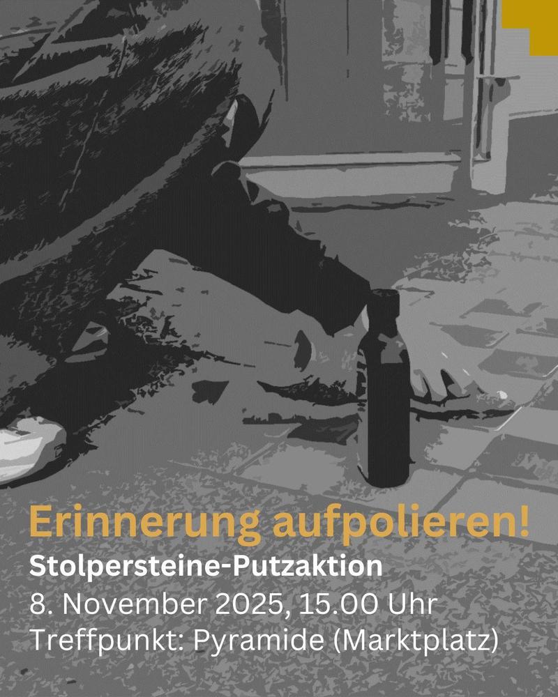 Um wieder Augenmerk auf die Stolpersteine zu lenken, ist eine unkonventionelle Form der Erinnerungsarbeit gefragt: Man muss sie aufpolieren. In mehreren Gruppen steuern wir am Samstag, dem 8. November 2025 die Stolpersteine in den Karlsruher Innenstadt an, putzen sie und gedenken der Menschen, denen sie gewidmet sind. Wir freuen uns auf Sie!