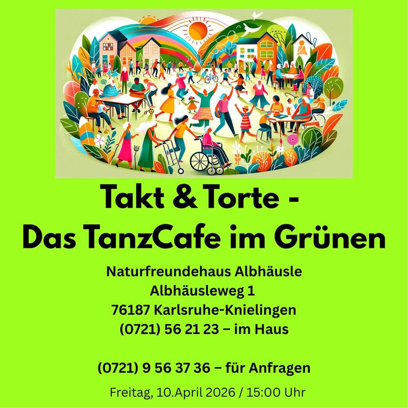 Takt & Torte – Das TanzCafe im Grünen ist ein offenes Begegnungsangebot mit Musik, Bewegung, Kaffee und Kuchen. In entspannter Atmosphäre können die Gäste tanzen, zuhören, sich unterhalten oder einfach dabei sein – ganz ohne Vorkenntnisse und im eigenen Tempo. Eine Anmeldung ist nicht erforderlich.