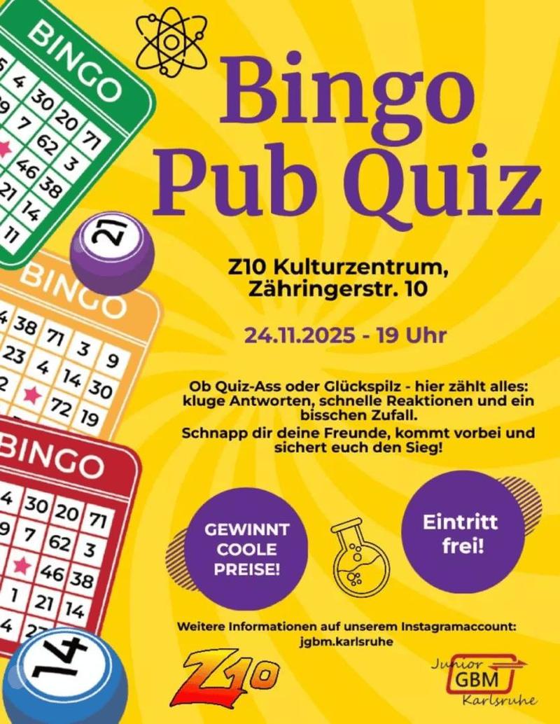 An diesem Abend erwartet dich ein Bingo Pub Quiz mit der jGBM! Ob Quiz-Ass oder Gückspilz - hier zählt alles: kluge Antworten, schnelle Reaktionen und ein bisschen Zufall. Schnapp dir deine Freunde, kommt vorbei und sichert euch den Sieg!
