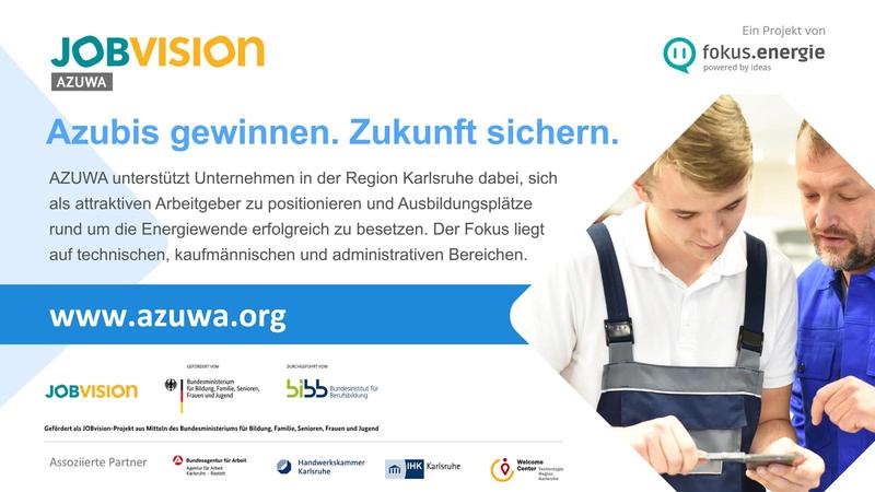 AZUWA ist ein Projekt von fokus.energie e.V., das Unternehmen in der Region Karlsruhe dabei unterstützt, Ausbildungsplätze rund um die Energiewende erfolgreich zu besetzen. Der Fokus liegt auf technischen, kaufmännischen und administrativen Bereichen. Ziel ist es, junge Menschen zu gewinnen, langfristig zu binden und die Sichtbarkeit der Betriebe als moderne Arbeitgeber zu stärken.